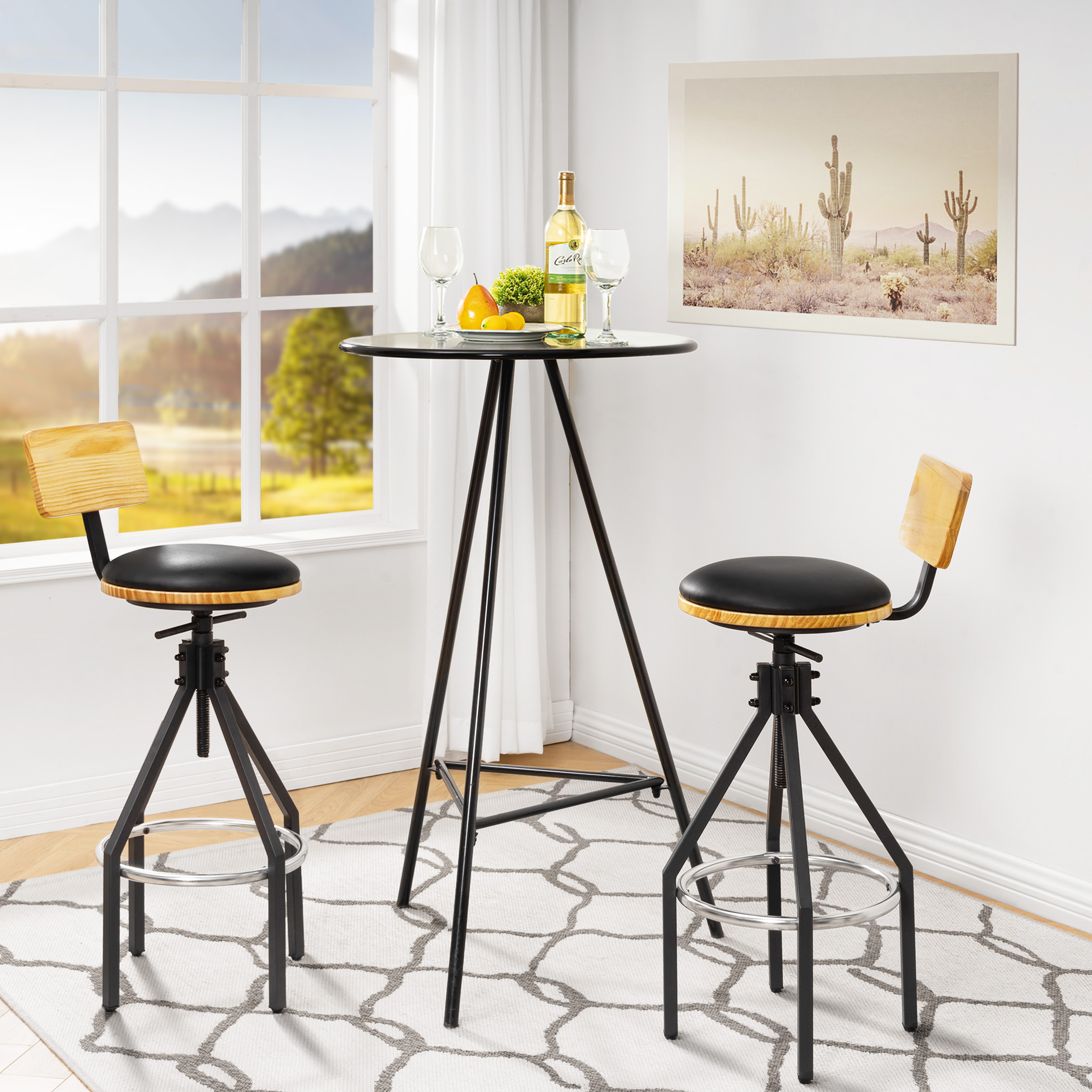 Effortless Assembly – Each bar stool measures 14.8 × 14.8 × 35 ~ 41 in (38 × 38 × 90 ~ 105 cm), stool top height ranges from 27.5 to 33 in (70 ~ 85 cm), ideal for tables and counters between 37 ~ 45.6 in (95 ~ 117 cm) high. Since each component part is clearly labeled, you may finish assembling it in 15 minutes with the help of the instruction sheet enclosed.