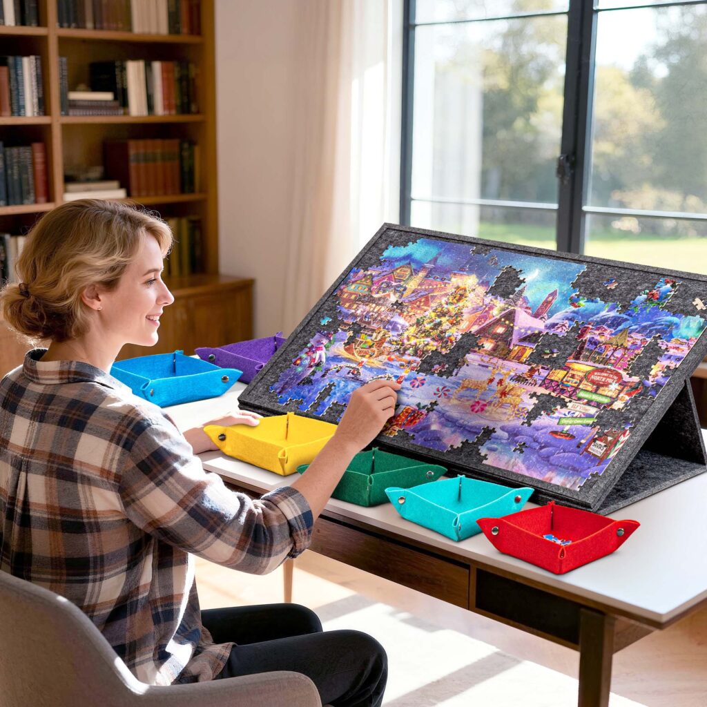 1000 Pieces Portable Jigsaw Puzzle Board with 6 Colored Sorting Trays