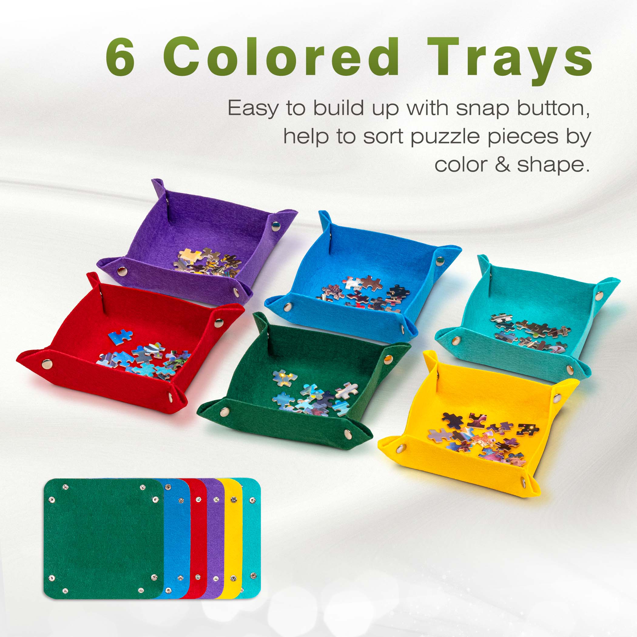• 6 Colorful Puzzle Sorting Trays – This adjustable puzzle board storage would stay organized with six vibrant sorting trays with which you can group pieces by color, shape, or theme. It’s a simple and effective way to speed up your puzzling and keep everything in place.