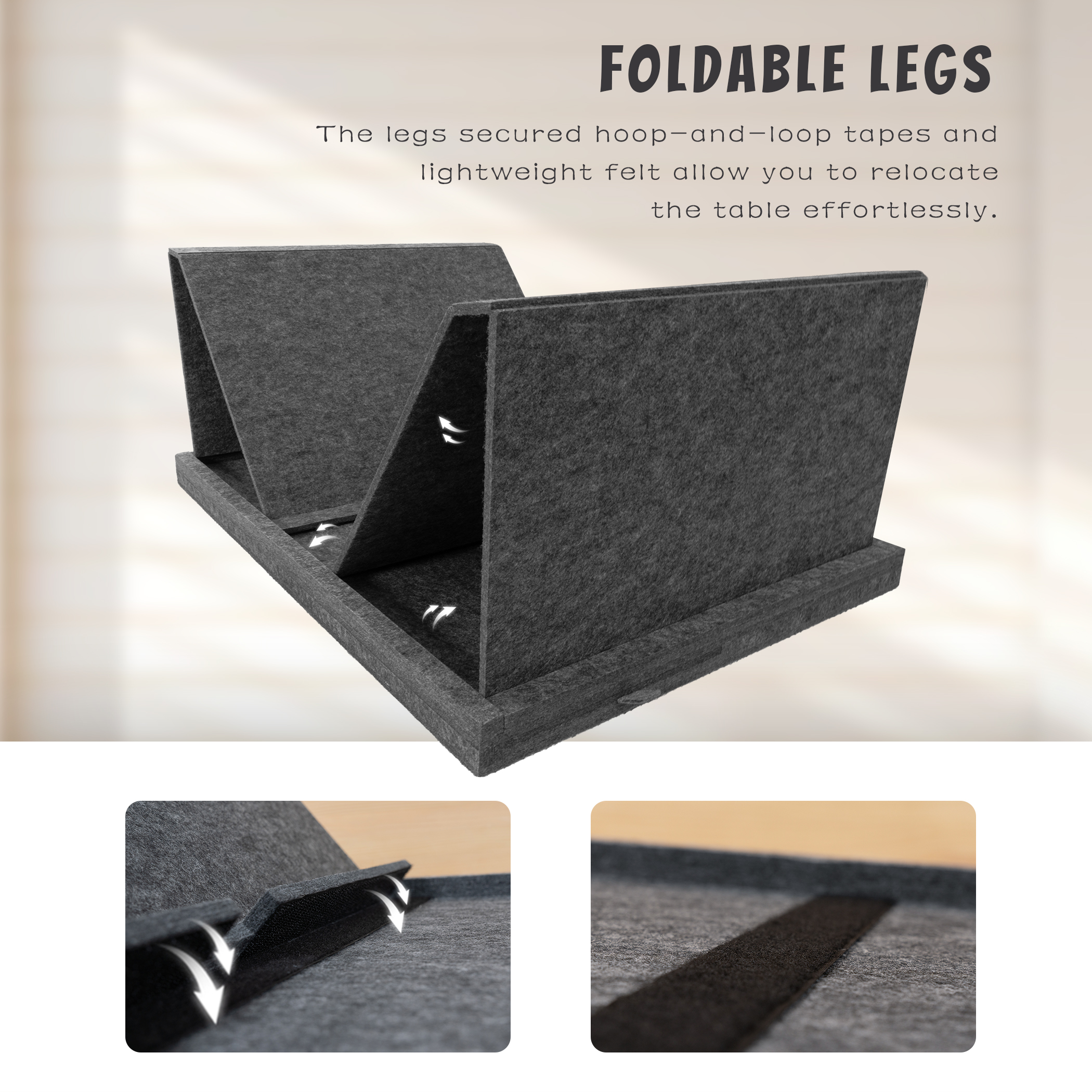 • ‌Foldable Legs for Versatility‌- Use it on the bed, floor, or carpet! The legs secured hoop-and-loop tapes and lightweight felt allow you to relocate the table effortlessly. Enjoy puzzles in comfy poses and in your favorite spots.