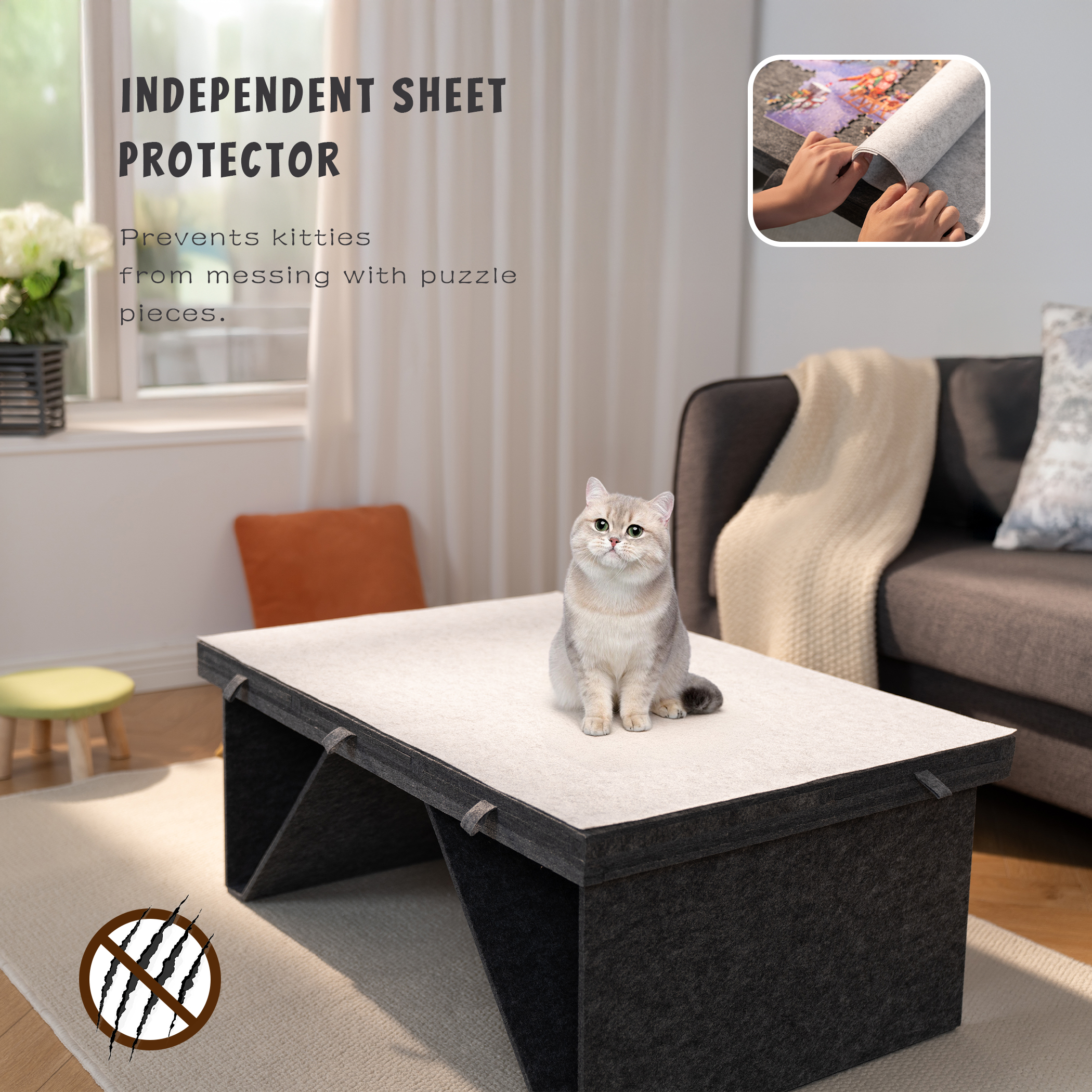 • Dust & Pet-Proof Cover‌ – Includes a separate protective felt sheet to shield puzzles from dust and curious paws.